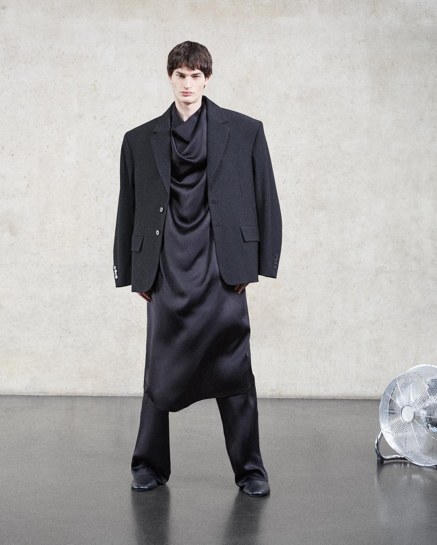 The city also conjures up notions of traditional gender roles and of how “masculine” silhouettes were often adopted by women. APAR pays tribute to this act by subverting it. Draped dresses and silky tops juxtapose the sartorial elements in the collection.