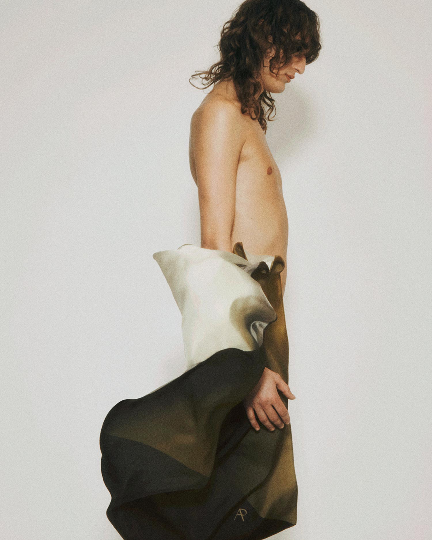A printed silk scarf with a diagonal design in an ombré, inspired by the ethereal hues of the artists of the 'Light & Space' movement.