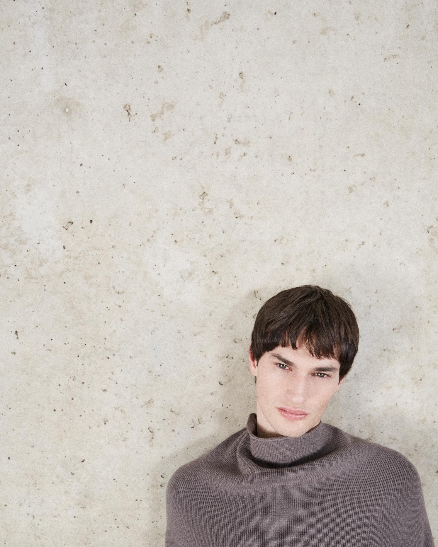 A luxury Merino-silk knitwear for all genders with a simple drape forming a signature yoke construction that envelopes the body.
