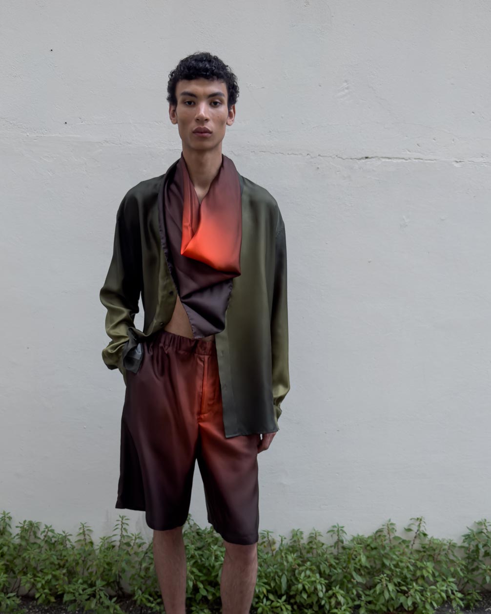 A fluid, printed silk twill short with elasticated waistband and an internal drawstring.