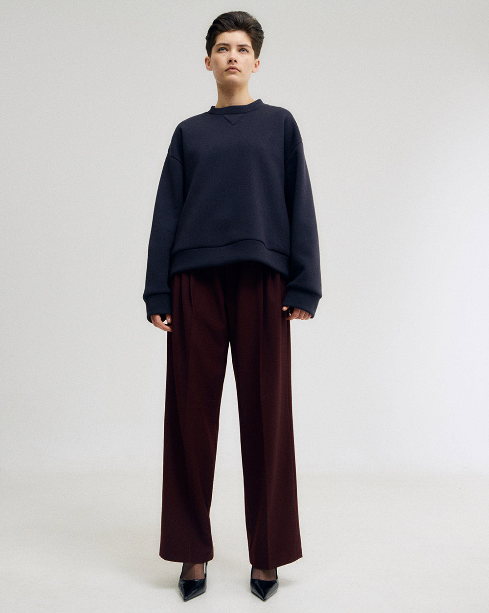 A easy fit, sweatshirt with a signature back yoke construction detail in a Japanese hybrid interlock jersey.